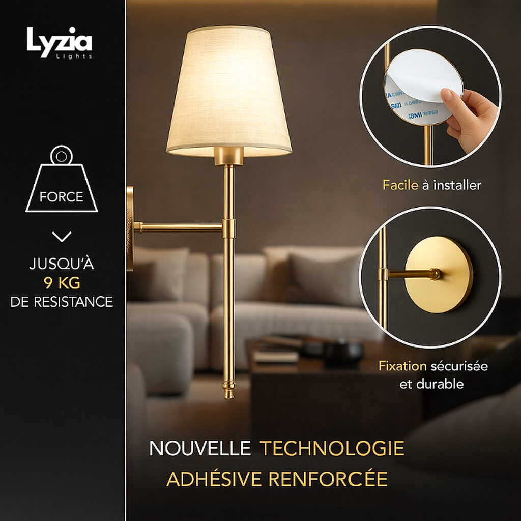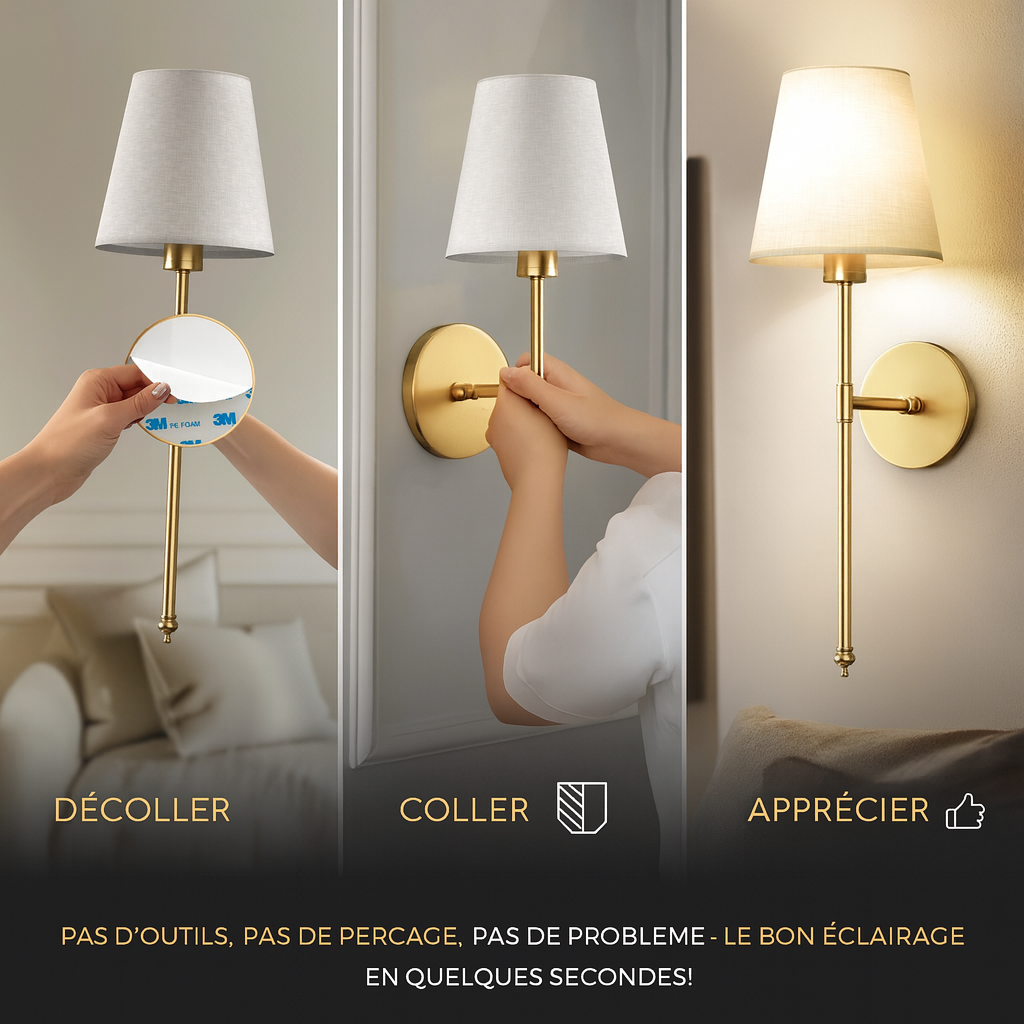 Pas du tout ! L’applique se fixe sans perçage, directement sur toutes surfaces. Temps moyen d’installation : 5 minutes.